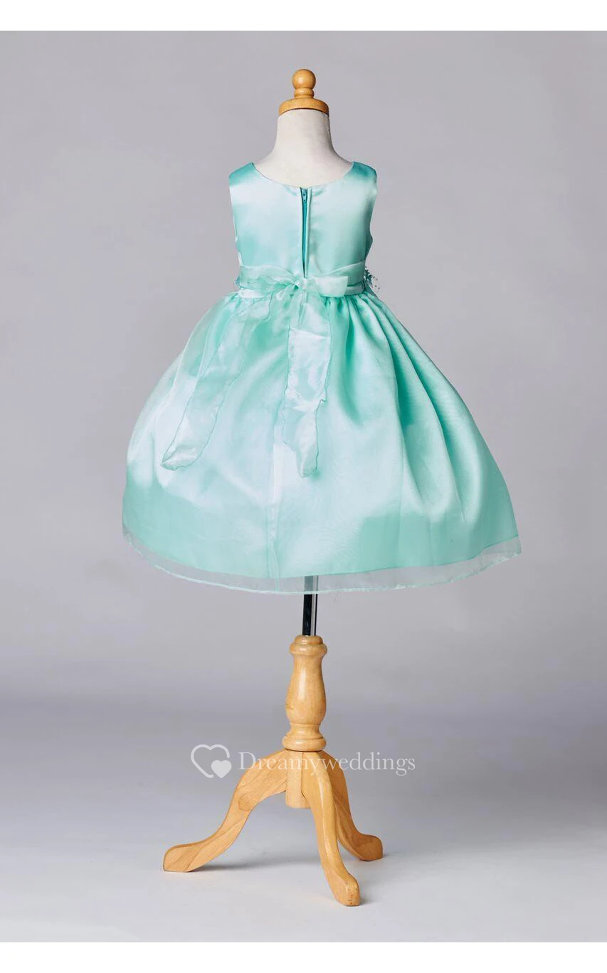 Scoop Neck Sleeveless A-line Ankle Length Organza Dress With Flower Sash
