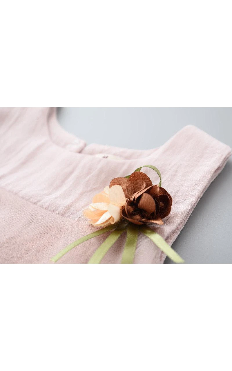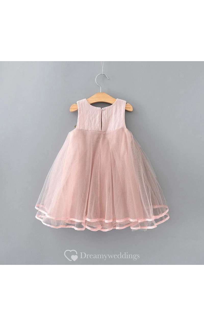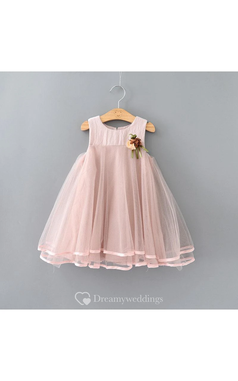 Scoop Neck Sleeveless Empire Tulle A-line Knee Length Dress With Flower