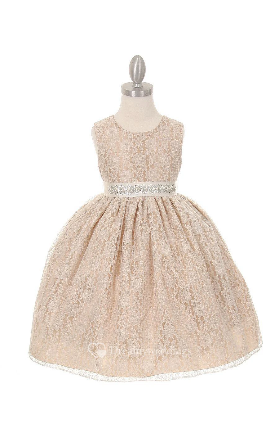 Scoop Neck Sleeveless Lace Ball Gown With Rhinestone Sash