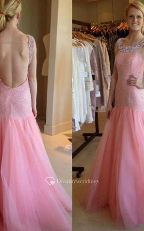 Scoop Neck Trumpet Beading Brush Train Prom Dress