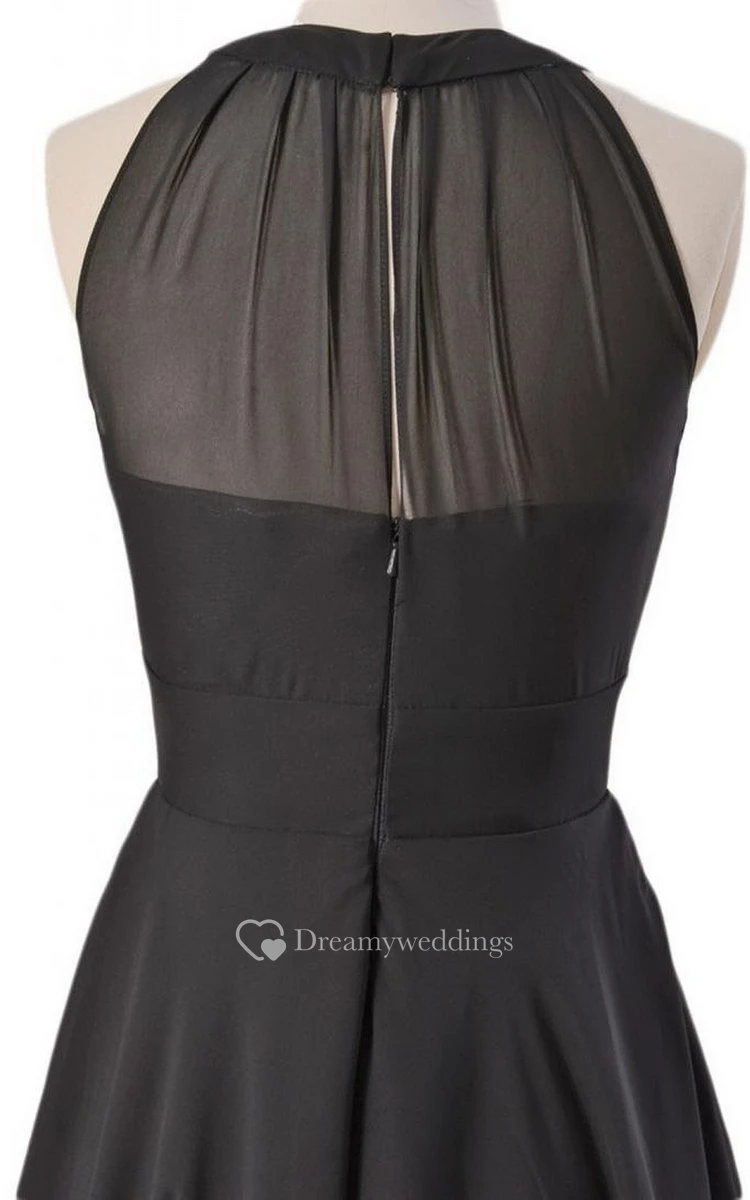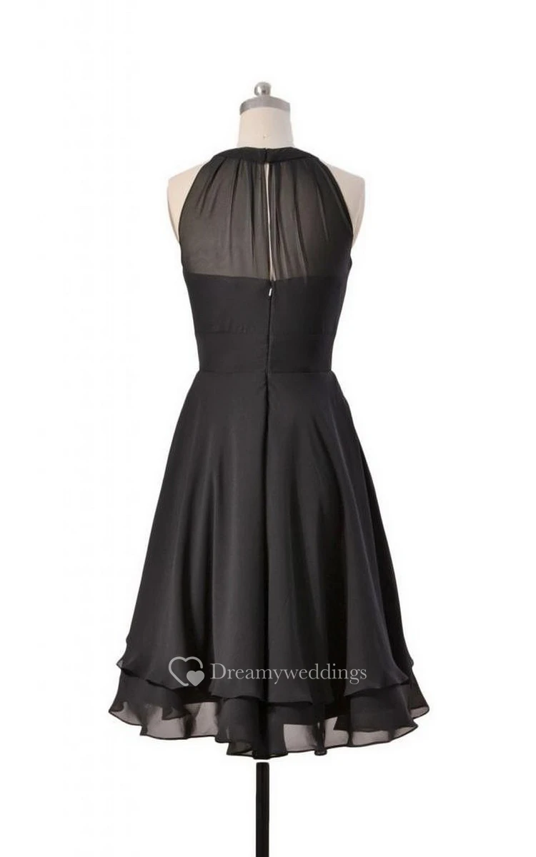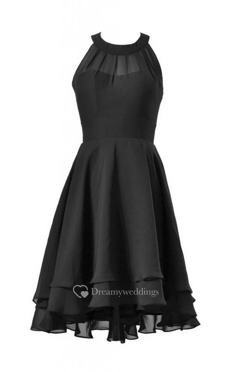 Scoop Neckline A-line Layered Dress With Illusion Back