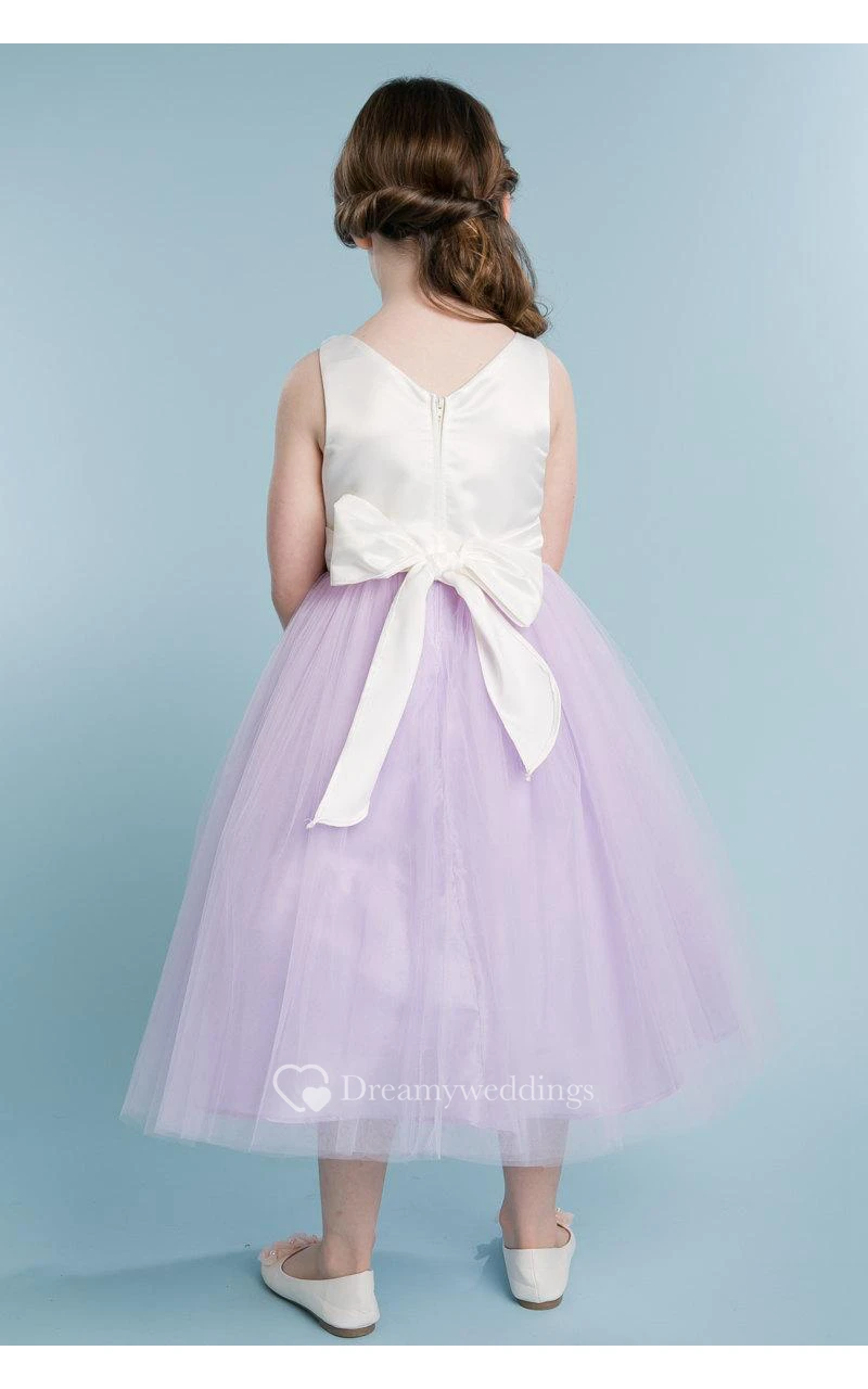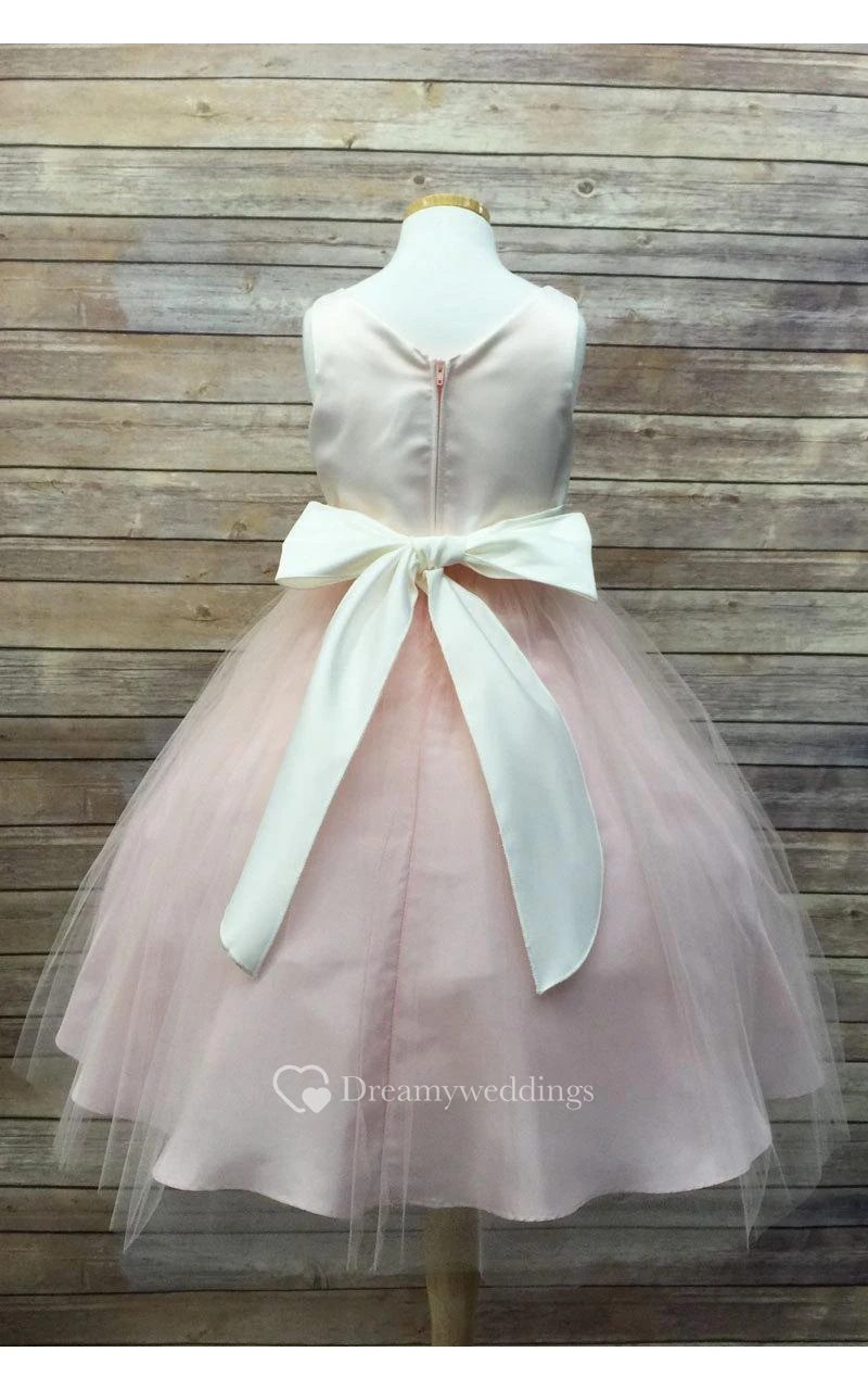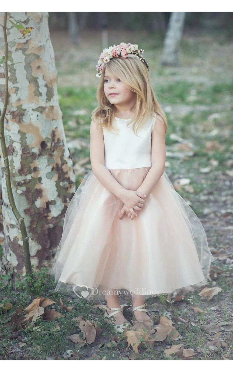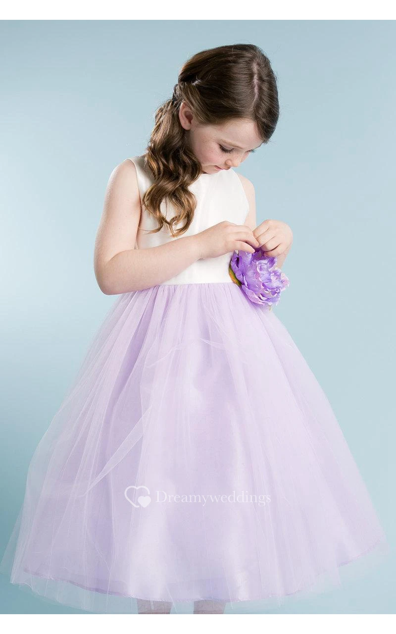 Scoop Neckline Sleeveless A-line Tulle Ankle Length Dress With Flower
