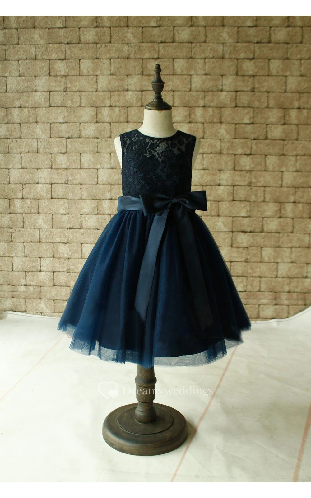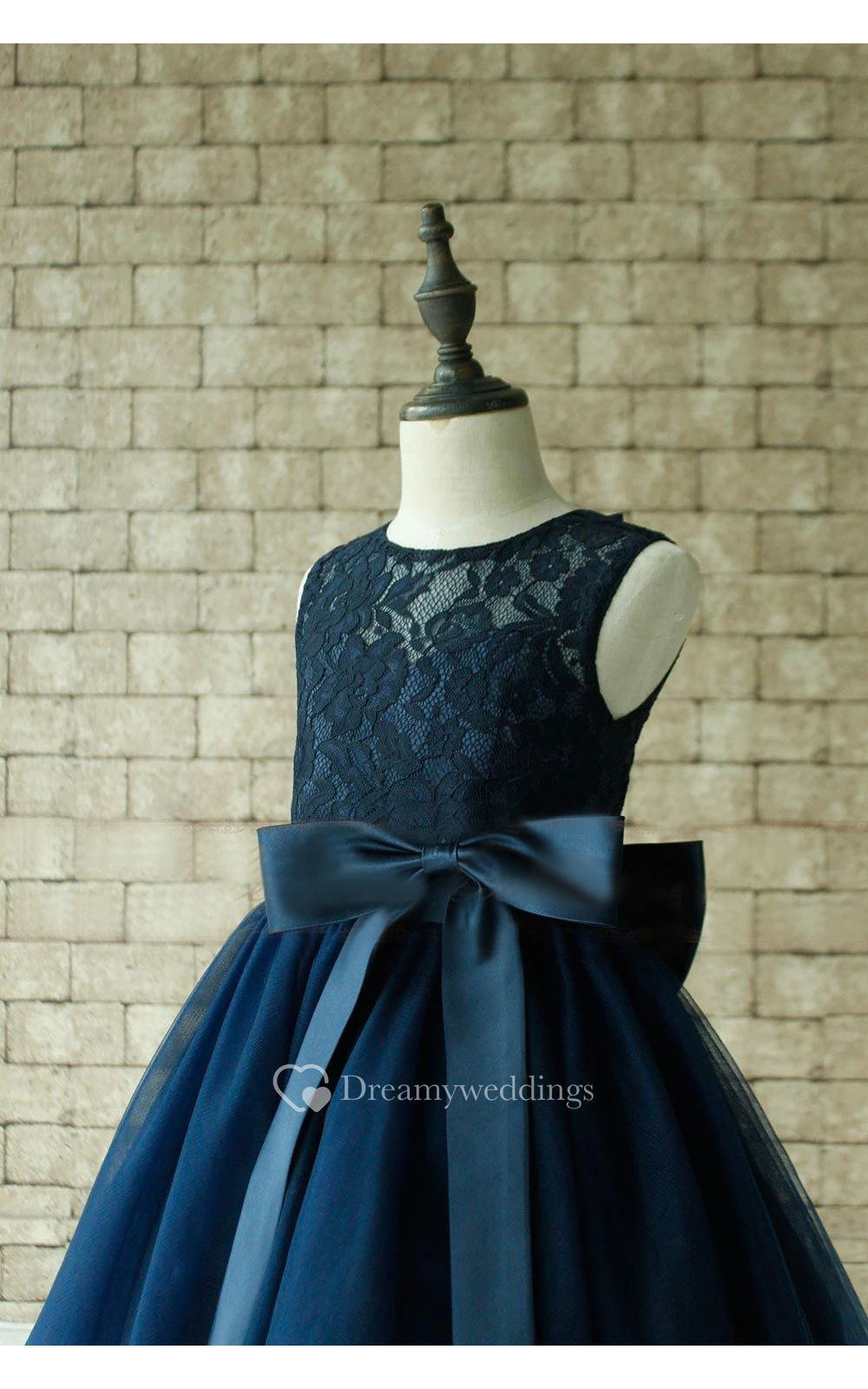 Scoop Neckline Sleeveless Lace Bodice Tulle Dress With Bow and Keyhole