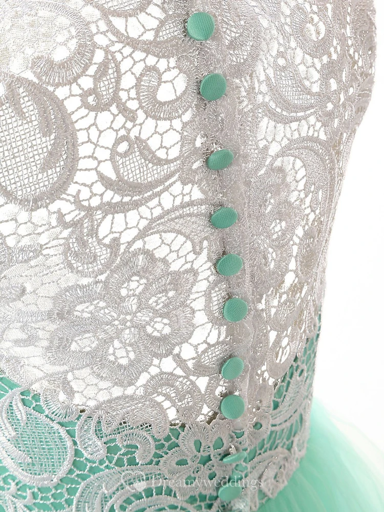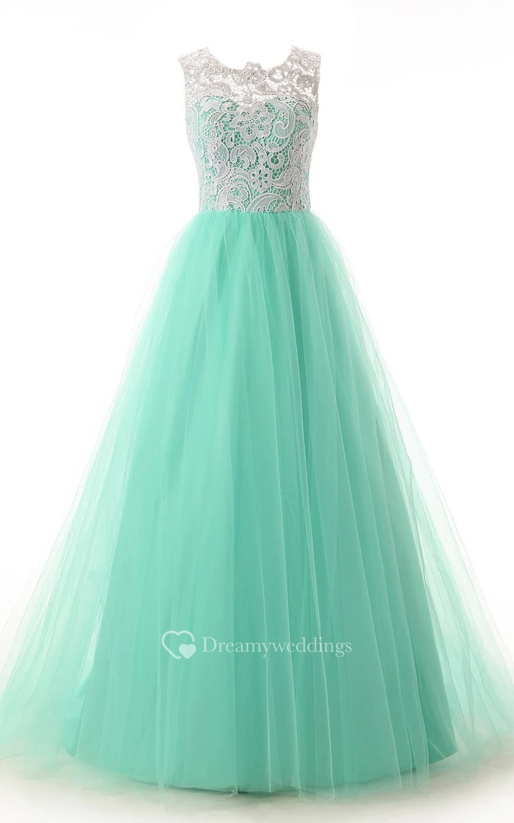 Scoop Necline Lace Bodice Dress With Tulle Skirt