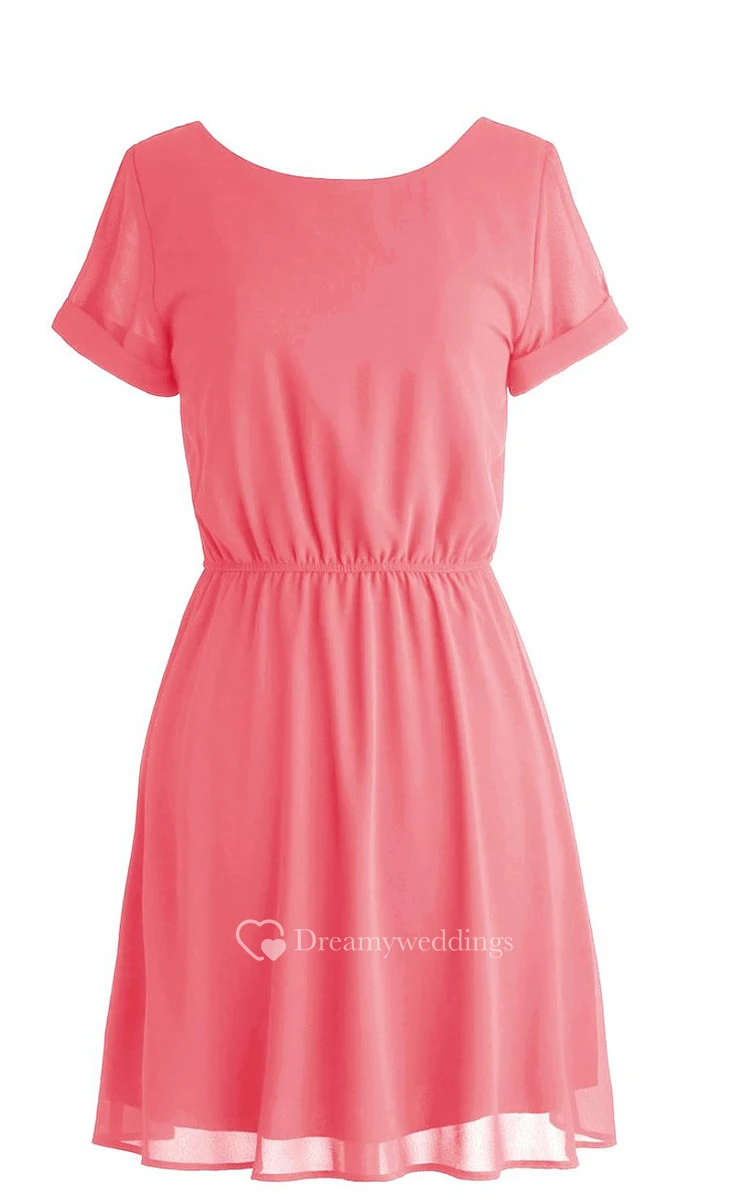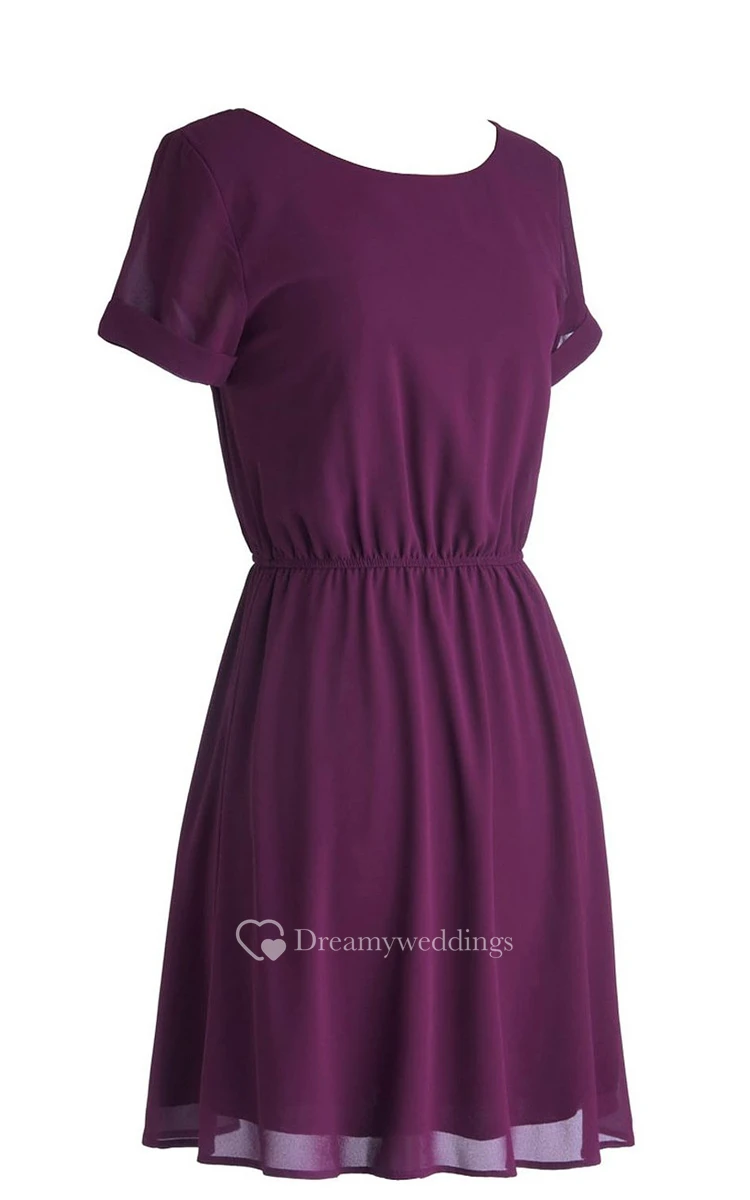 Scoop Short-sleeve Bridal Dress With Lace-up Back