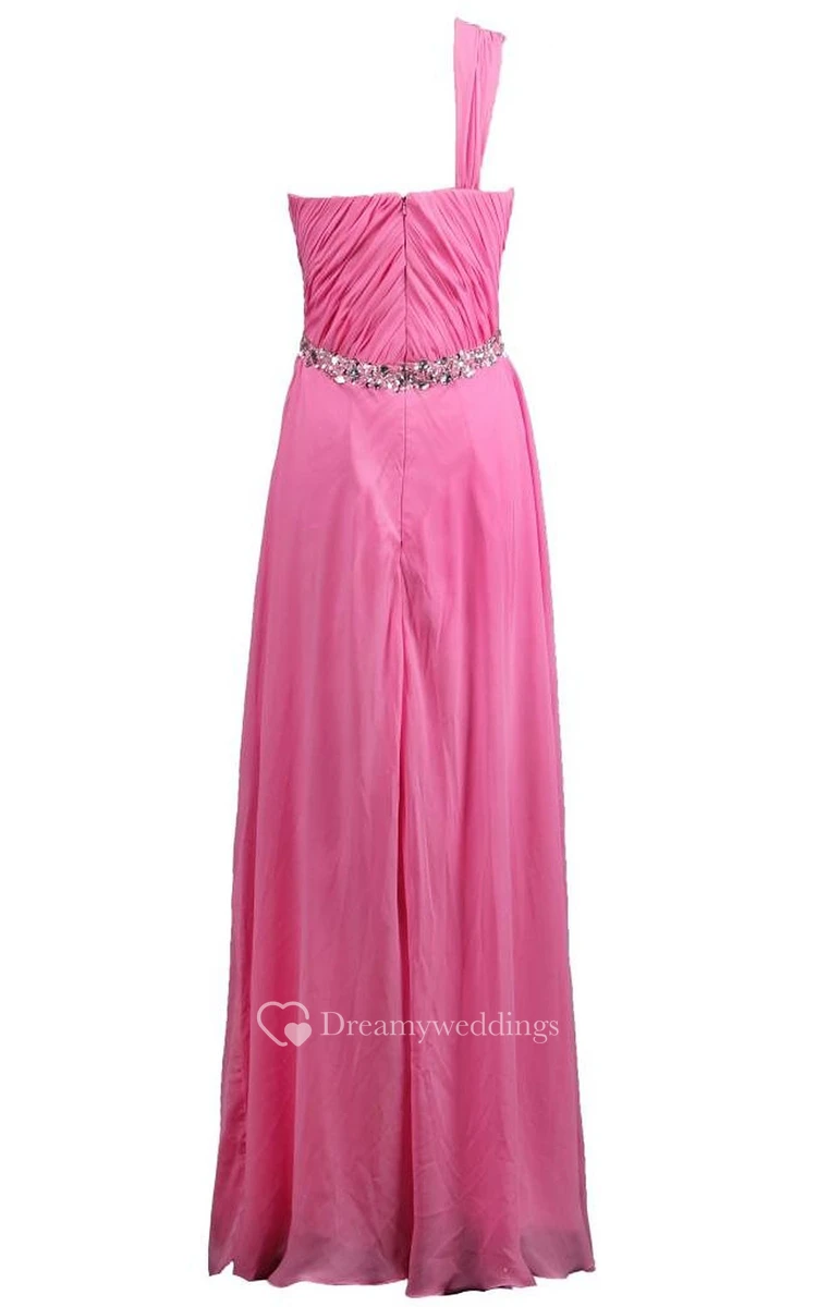 Sequined One-shoulder Pleated Long Dress With Zipper Back