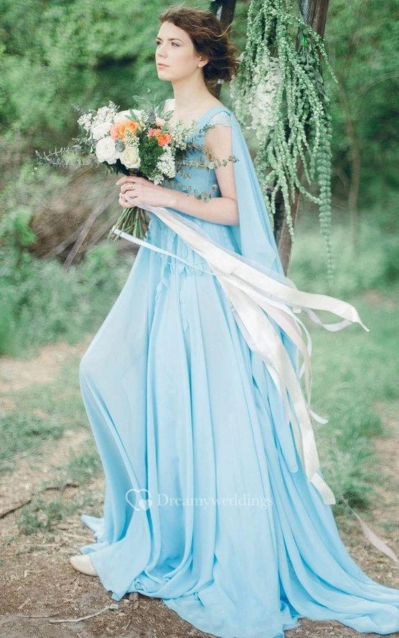 Serenity Bohemian Sky Blue Chiffon Wedding Or Prom Non Traditional Coloured Bridal Gown Dress