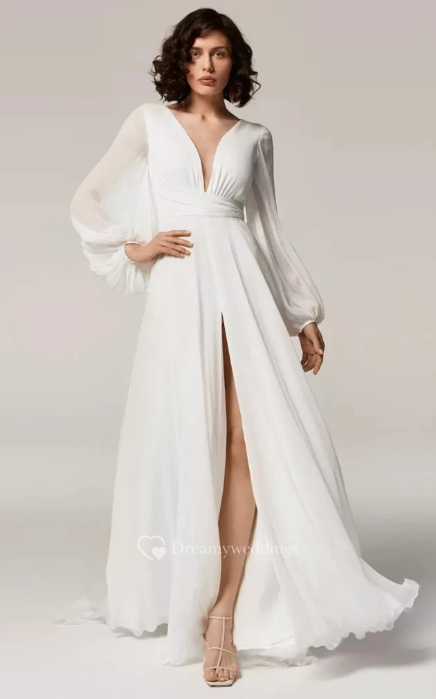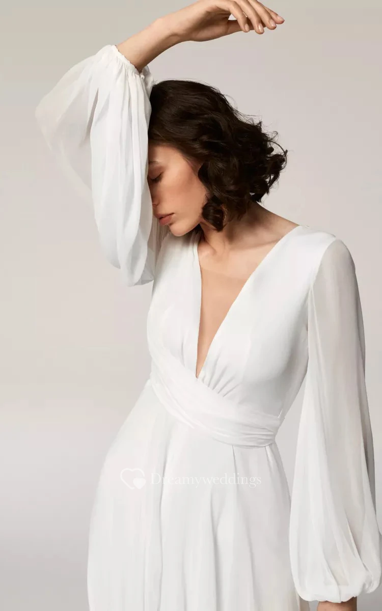 Sexy A Line Chiffon 3/4 Length Sleeve Poet Wedding Dress with Ruching