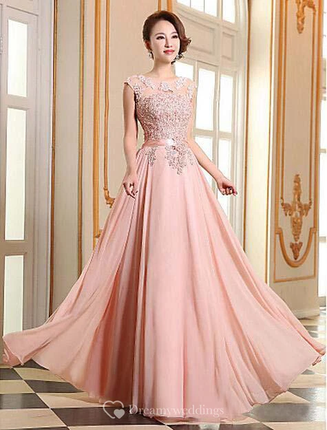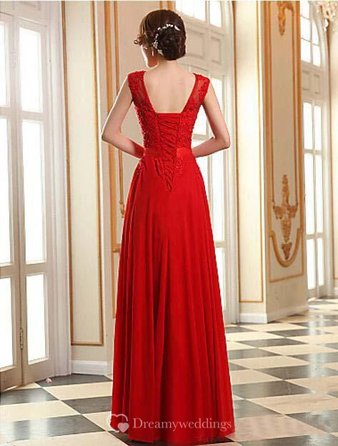 Sexy A-line Jewel Chiffon Prom Dress Lace Appliques