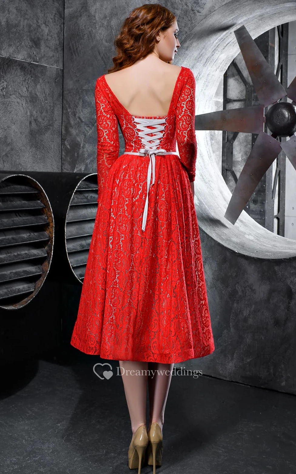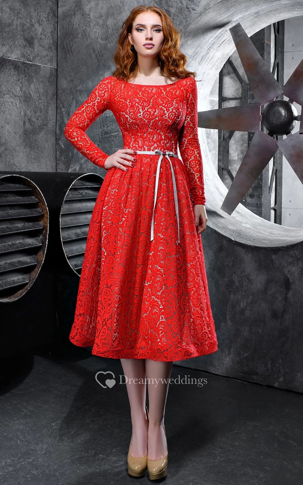 Sexy Bateau A Line Lace Tea-length Cocktail Dress with Sash