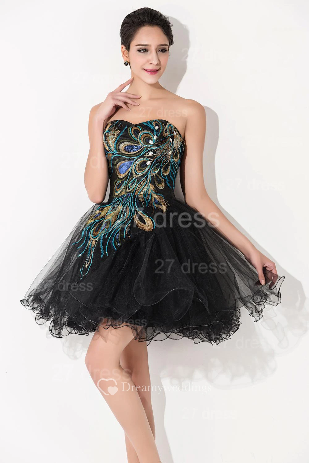 Sexy Black Sweetheart Short Tulle Homecoming Dress Peacock Design