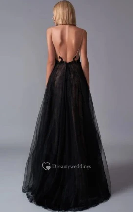 Sexy Brush Train Sleeveless Tulle A Line Backless Prom Dress with Ruching