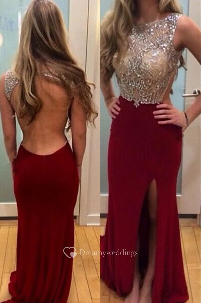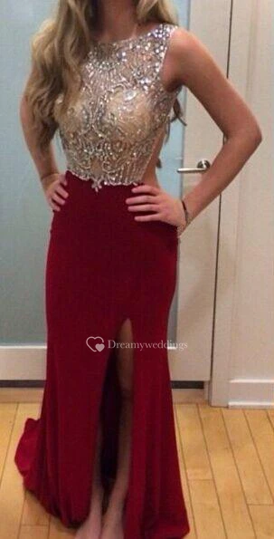 Sexy Front Split Mermaid Evening Dress Beadings Sequins Sweep Train