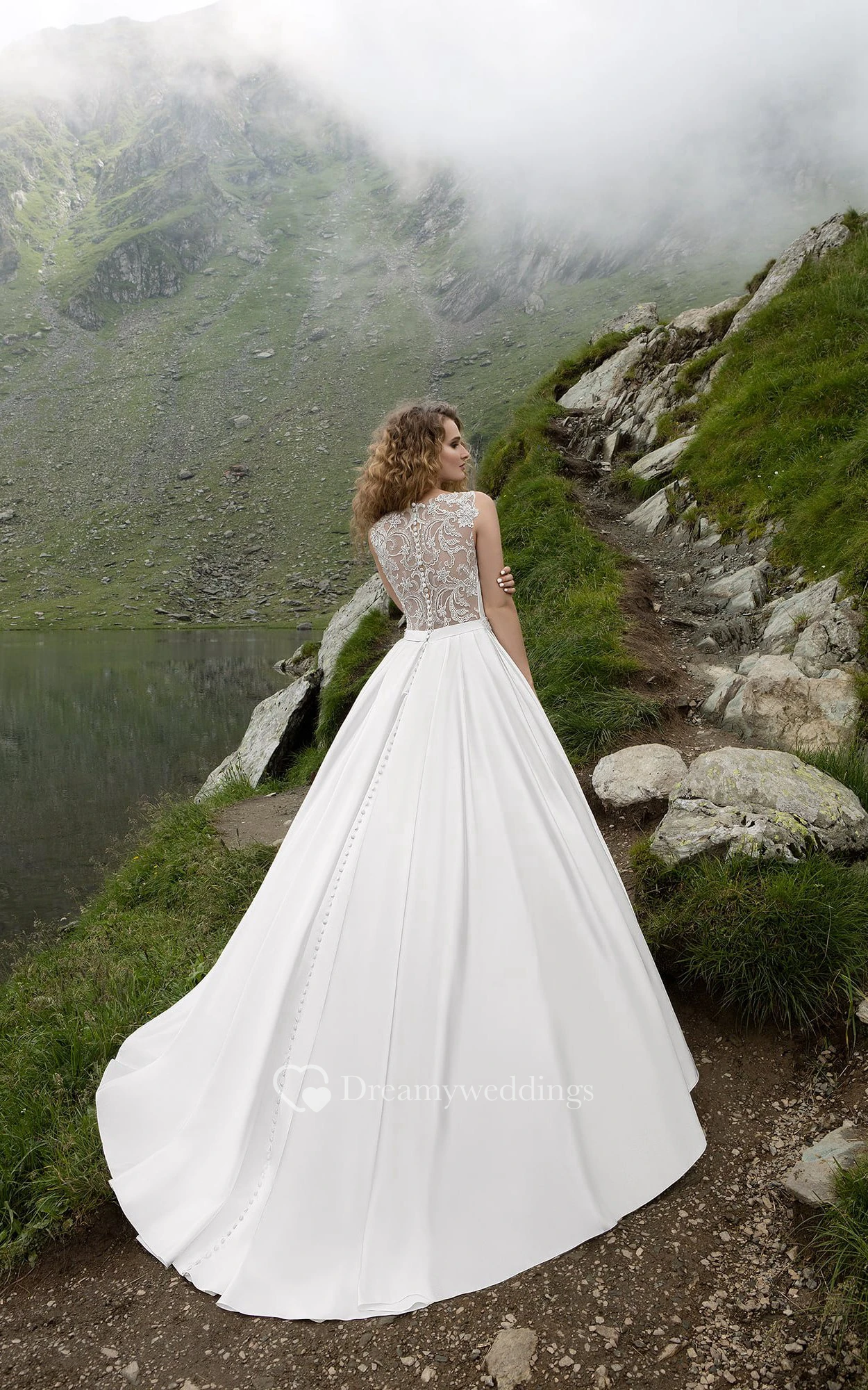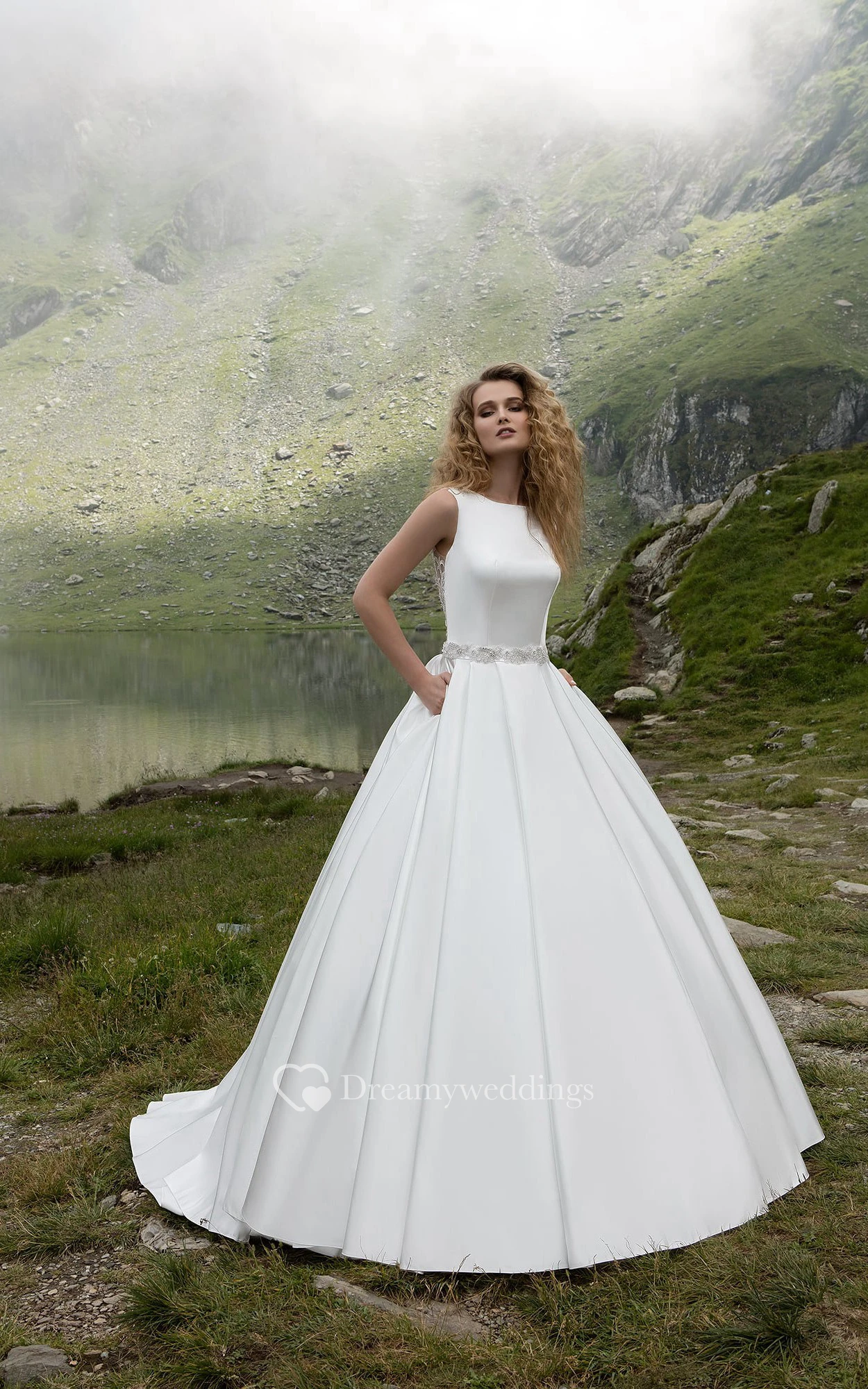 Sexy Illusion Back Satin A-line Dress With Crystal Detailing
