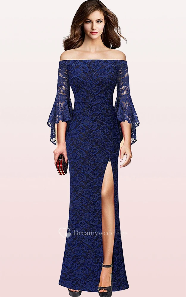 Sexy Lace Off-the-shoulder Mermaid Guest Evening Dress With Split Front