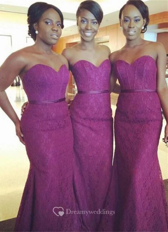 Sexy Mermaid Lace Sweetheart Bridesmaid Dress Sleeveless Sweep Train