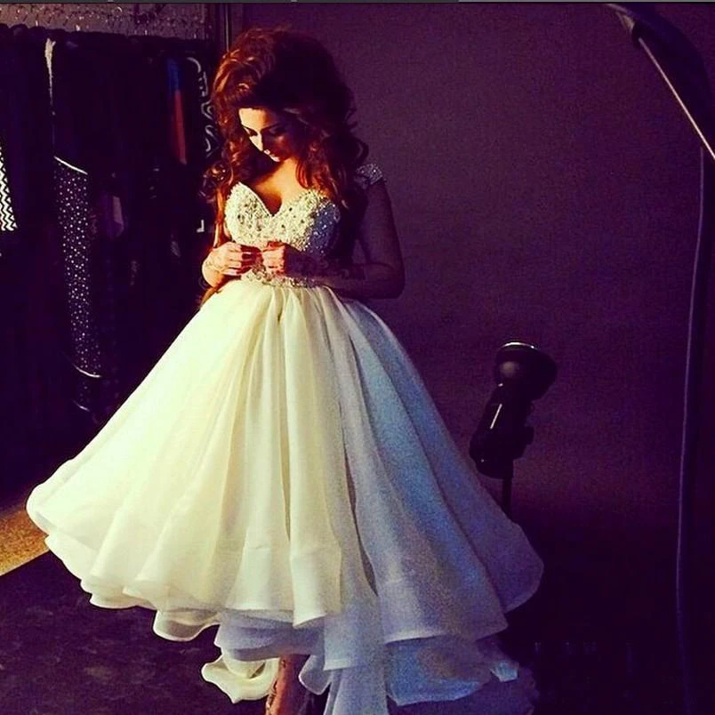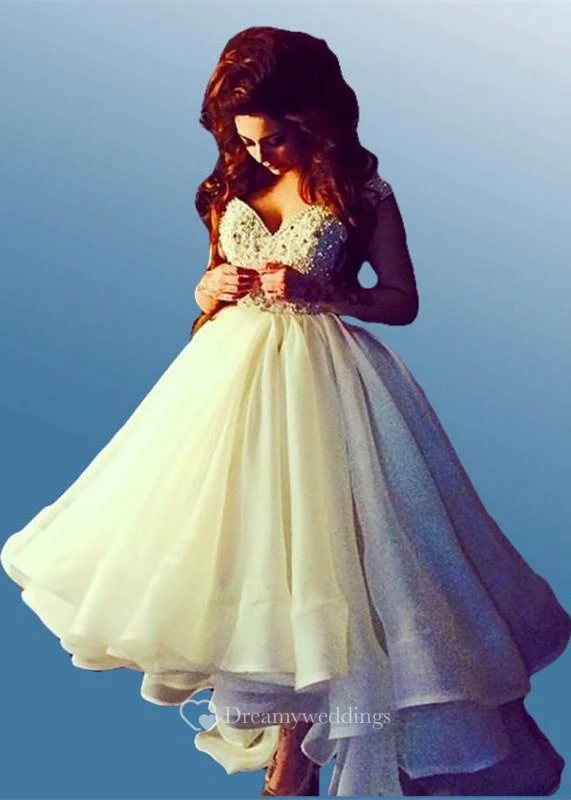 Sexy Off-the-shoulder Hi-Lo Princess Prom Dress Ruffles Crystals