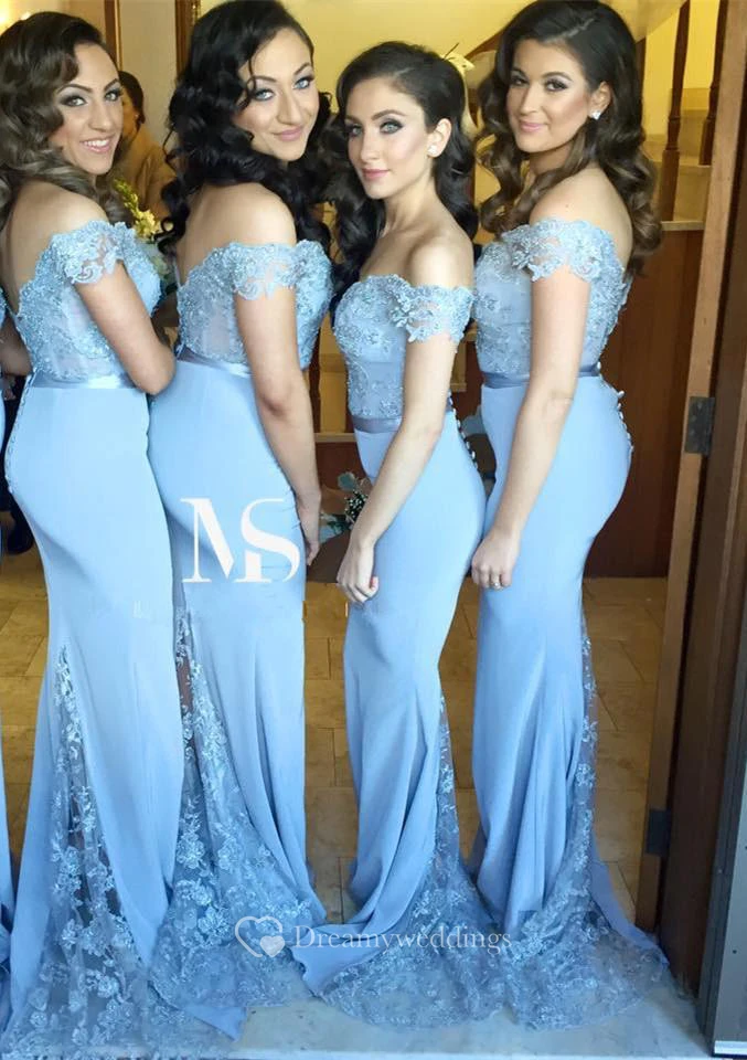 Sexy Off-the-shoulder Mermaid Lace Appliques Bridesmaid Dress Zipper Button Back