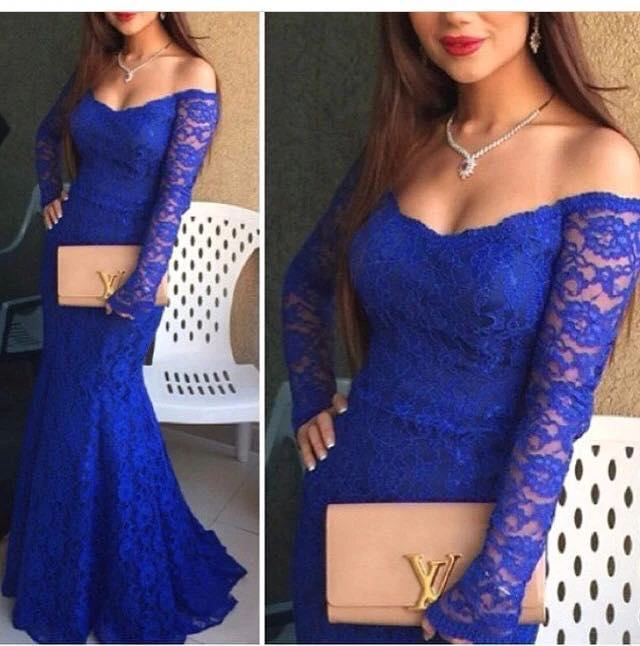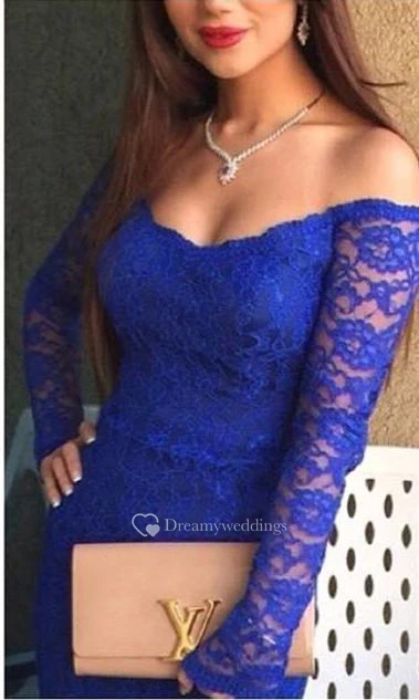 Sexy Off-the-shoulder Royal Blue Evening Dress Lace Mermaid Sweep Train