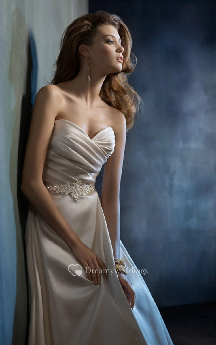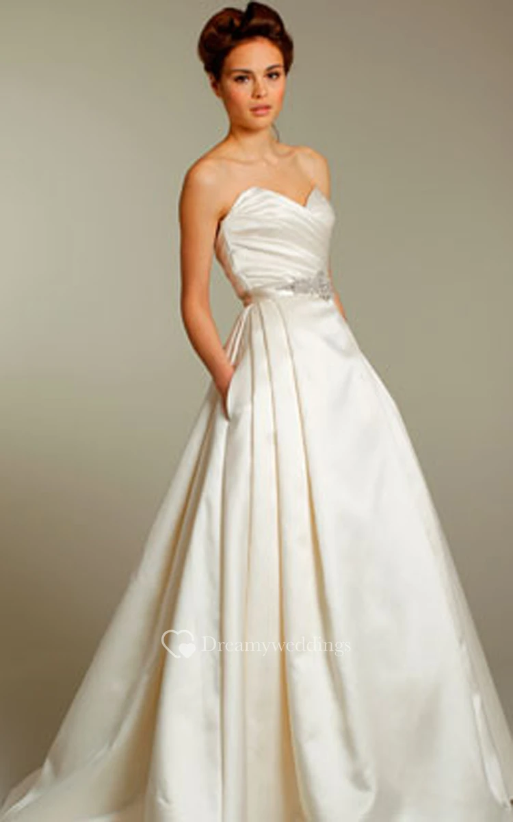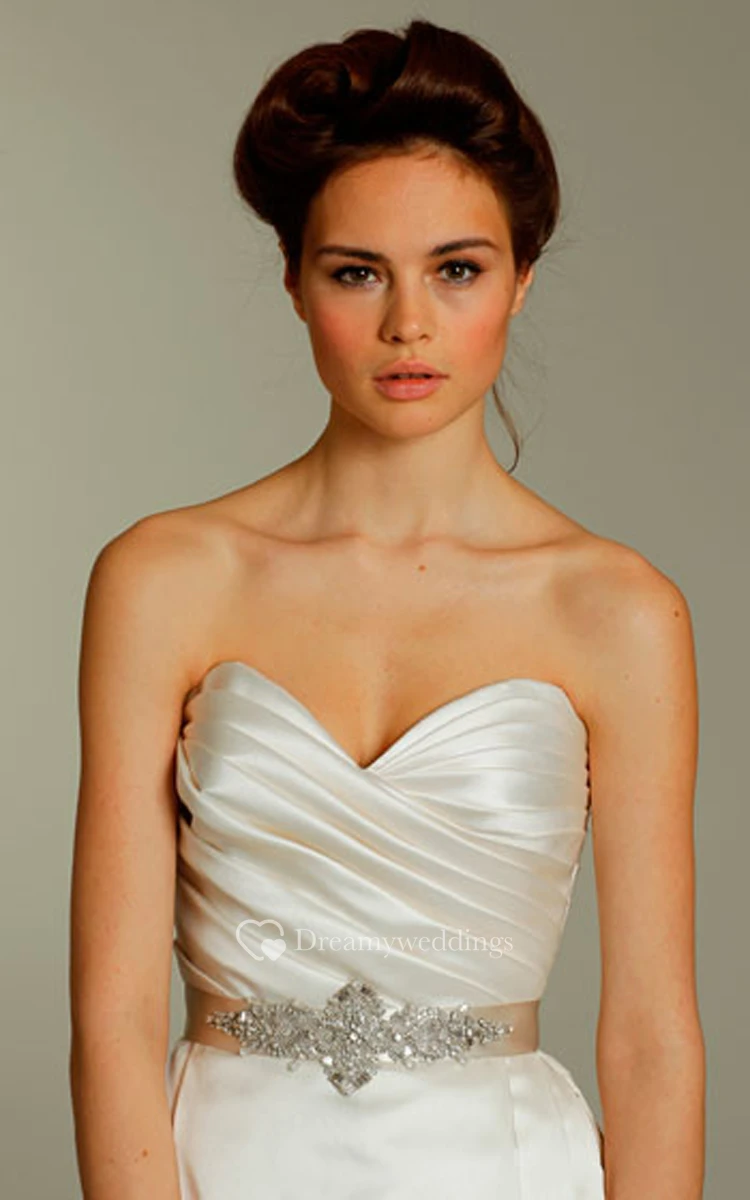 Sexy Pleated Bodice Side Draped Ball Gown With Crystal Beaded Belt