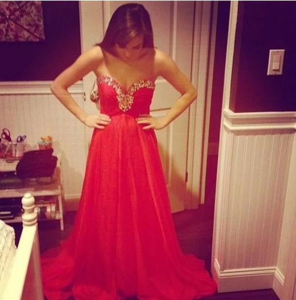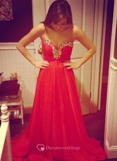 Sexy Red Sweetheart Prom Dress Chiffon Long A-line Evening Party Gowns