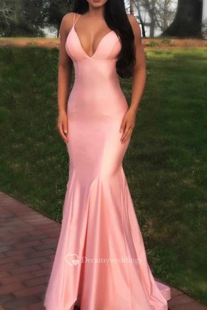 Sexy Satin Mermaid Spaghetti Floor Length Dress with Open Back