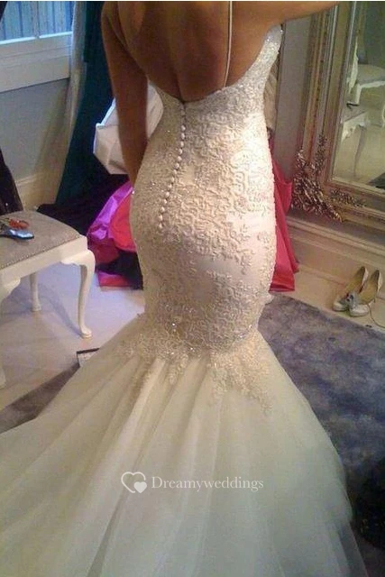 Sexy Sequins Mermaid Tulle Wedding Dress Lace Appliques Spaghetti Strap