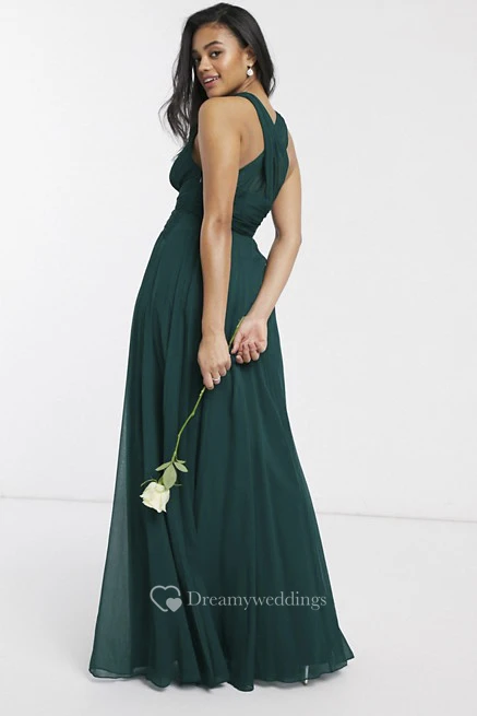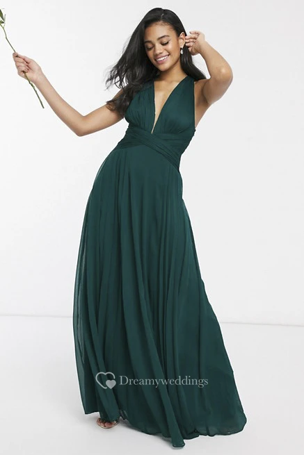 Sexy Sleeveless And Straps Back With Ruching Plunging Neckline Bridesmaid Dress