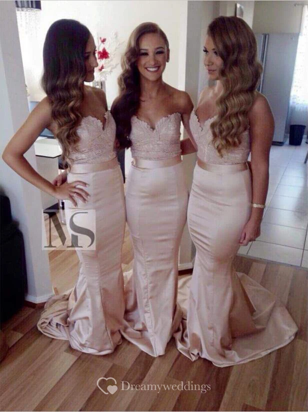 Sexy Sleeveless Sweartheart Mermaid Bridesmaid Dress Sweep Train