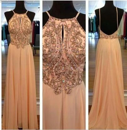 Sexy Spagetti Long Prom Dress Chiffon Straps Evening Party Gowns With Beadings Crystal