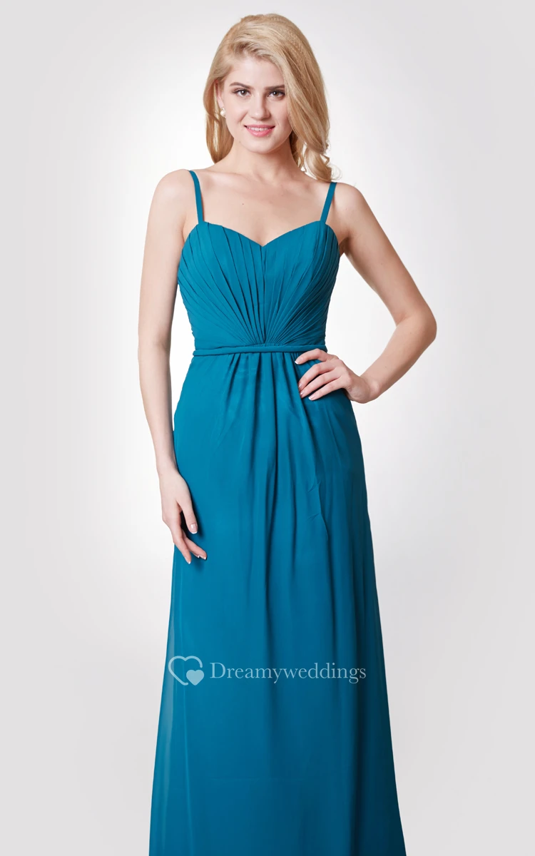 Sexy Spaghetti Straps Chiffon A-line Gown With Pleats