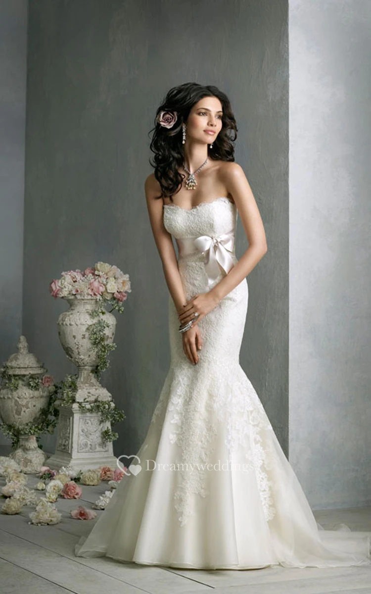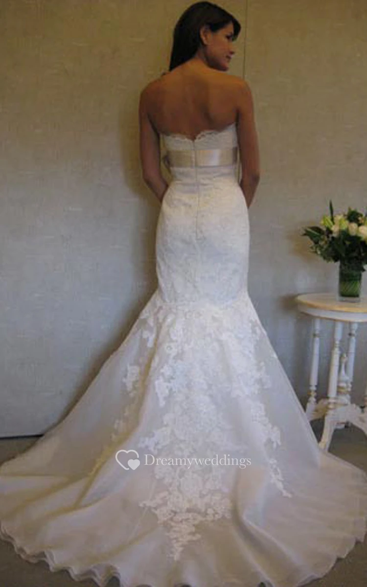 Sexy Strapless Lace Organza Mermaid Dress With Satin Ribbon