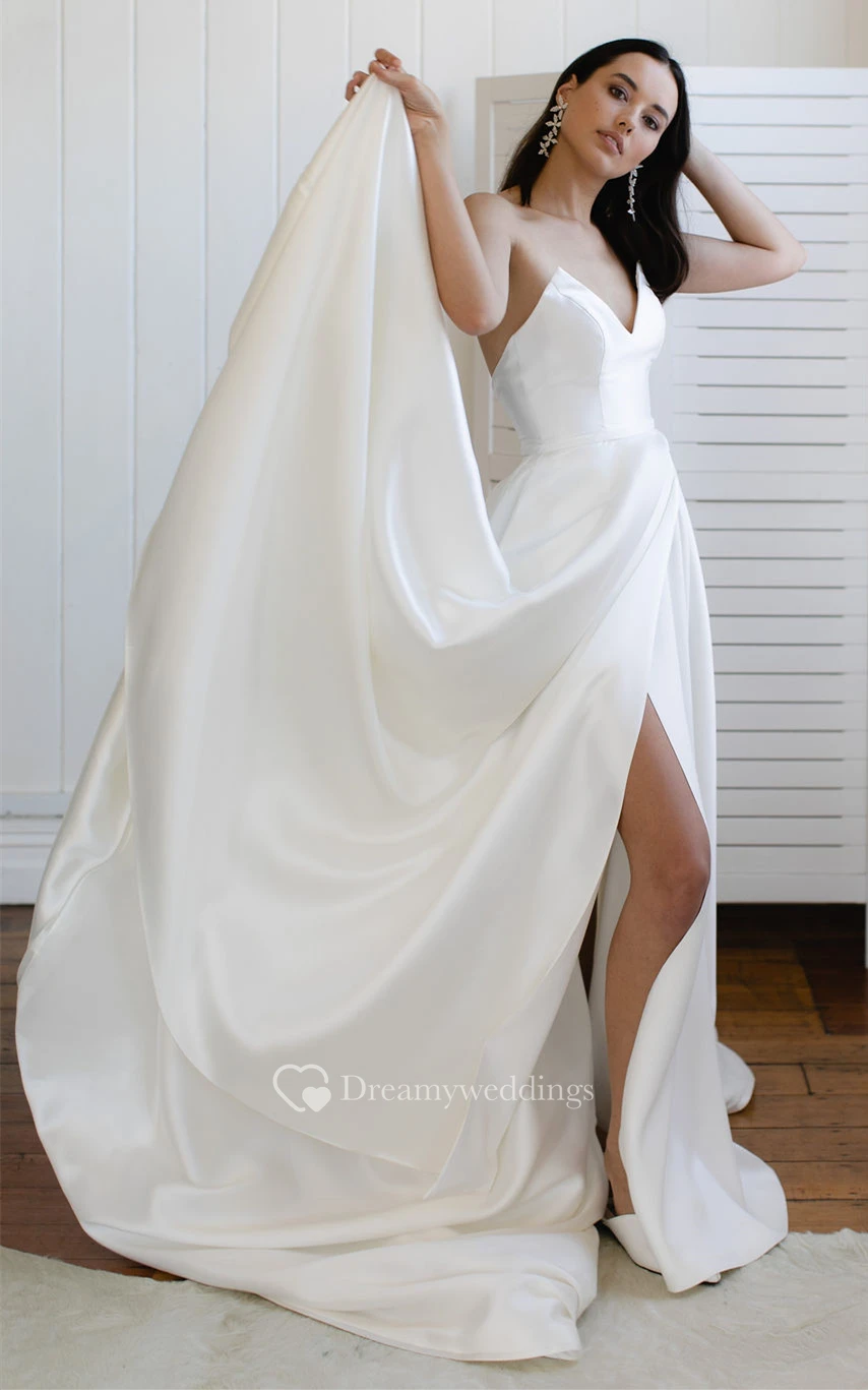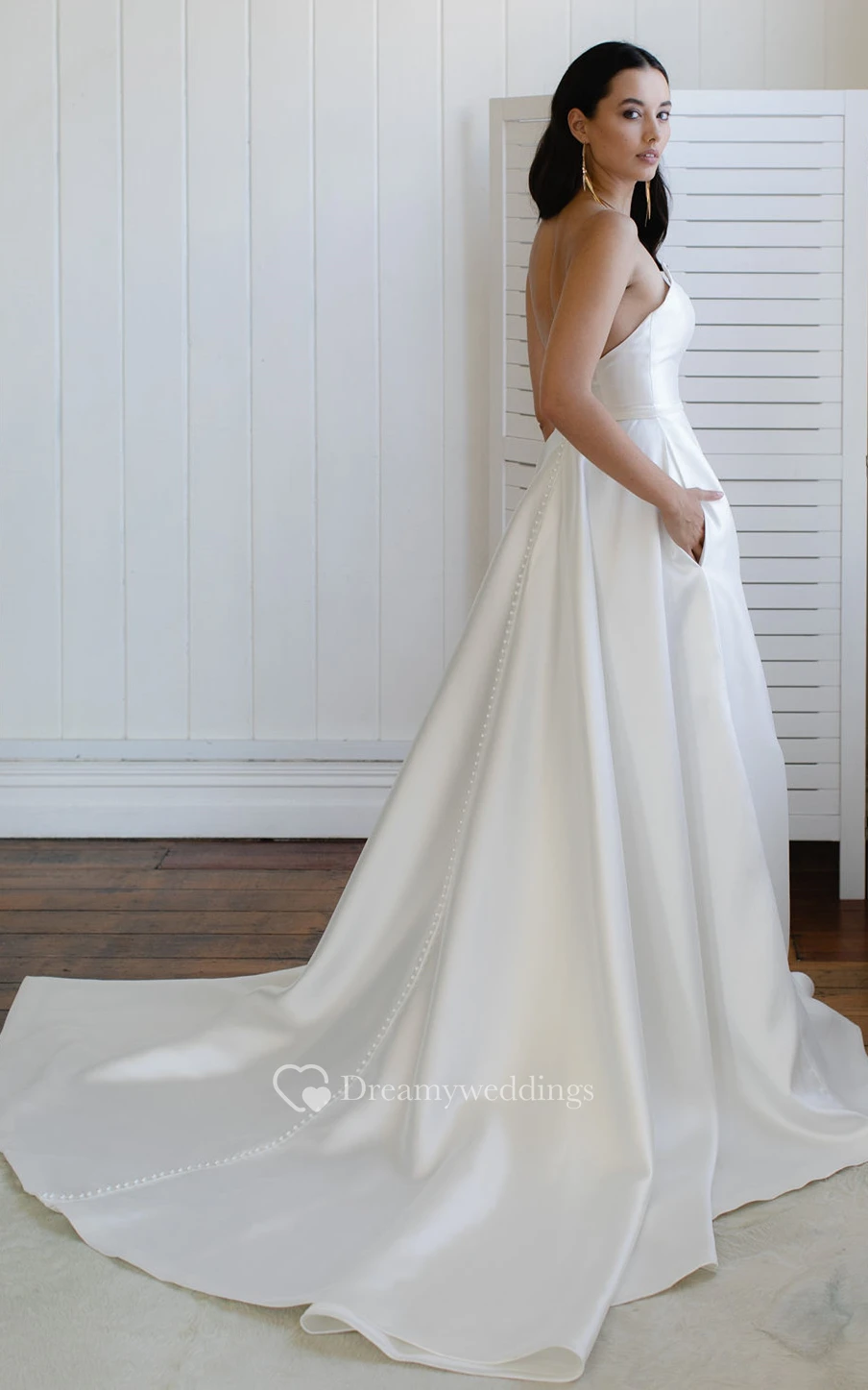 Sexy Sweetheart A Line Wedding Dress with Pockets and Train