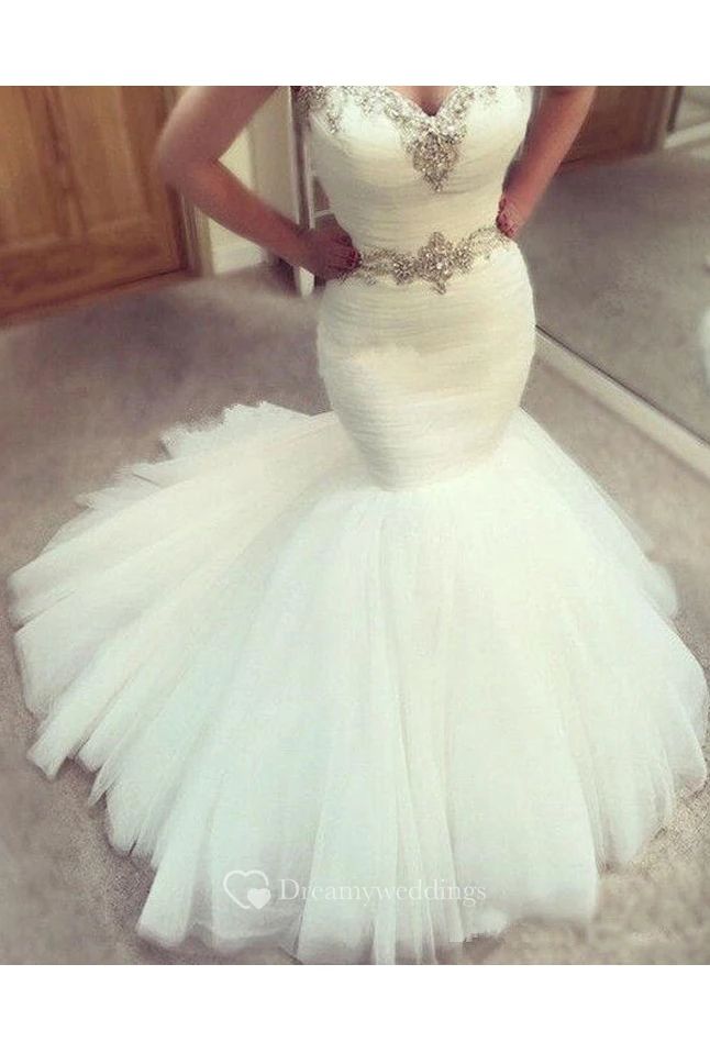 Sexy Sweetheart Sleeveless Country Beads Crystal Waist Tulle Mermaid Wedding Dress