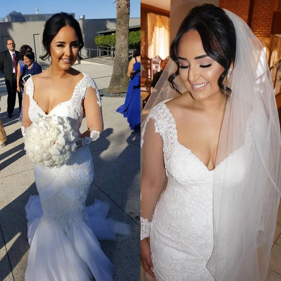 Sexy Tulle Lace Mermaid Wedding Dress Long Sleeve Sweep Train