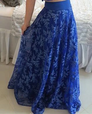 Sexy Two Piece Royal Blue Prom Dress Appliques Short Sleeve