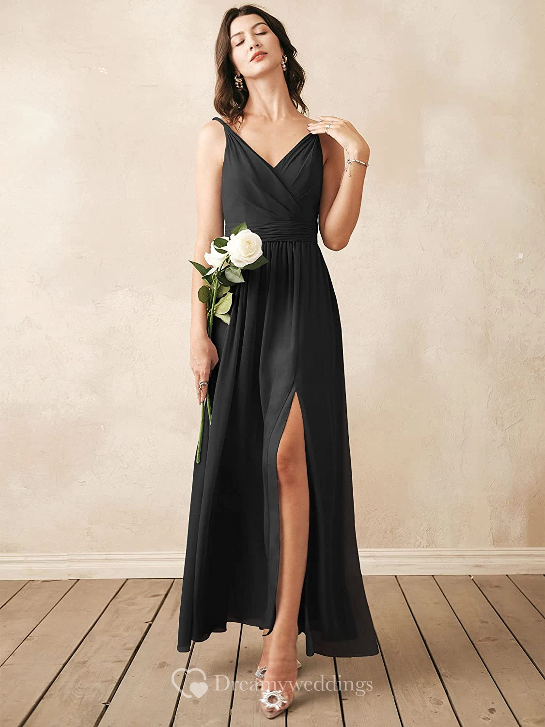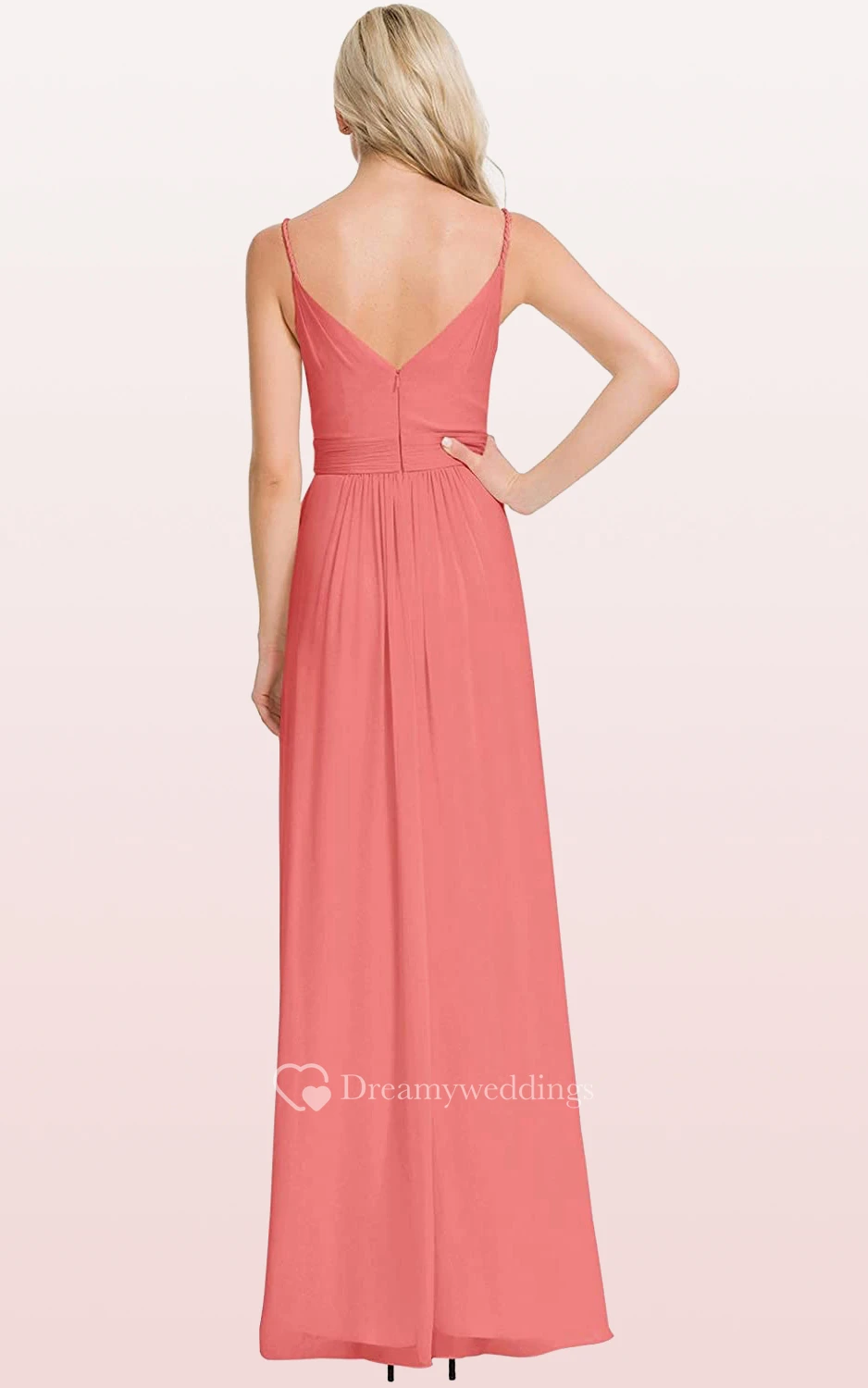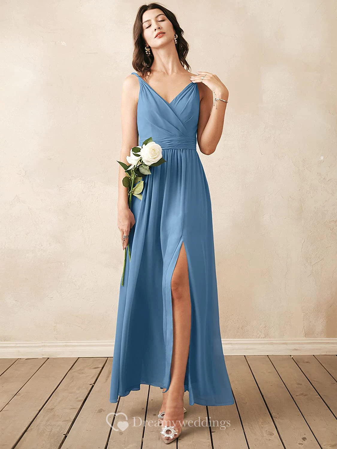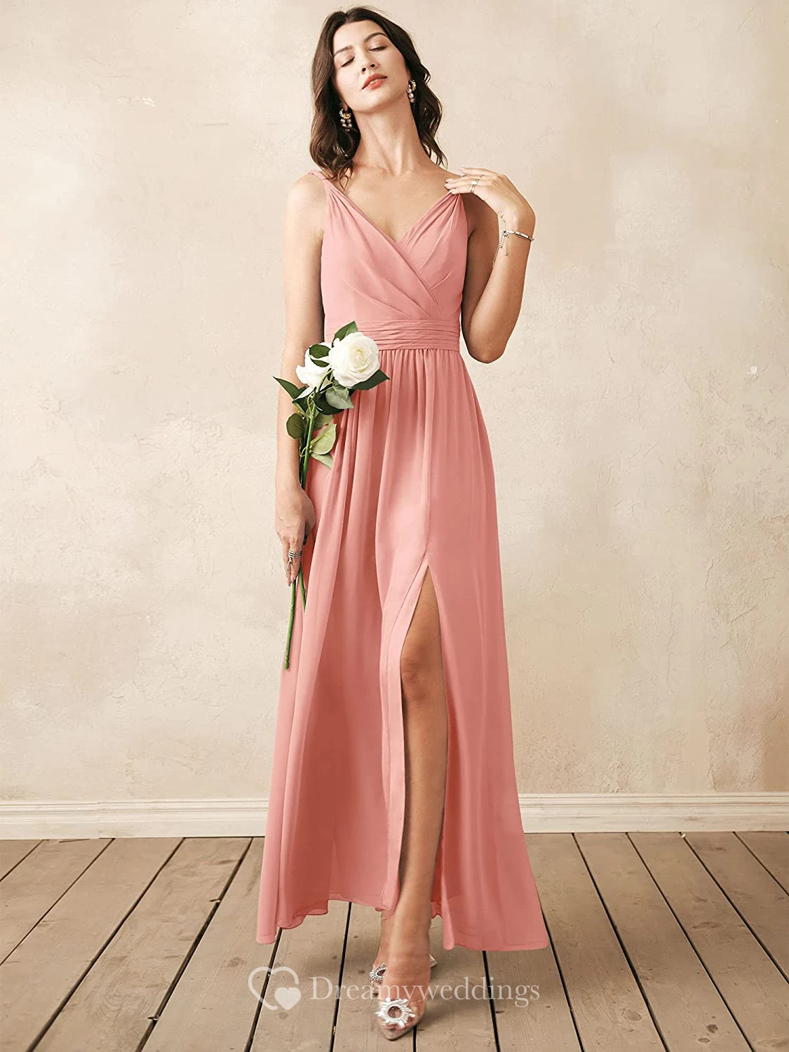 Sexy V-neck A Line Sleeveless Ankle-length Chiffon Bridesmaid Dress With Ruching