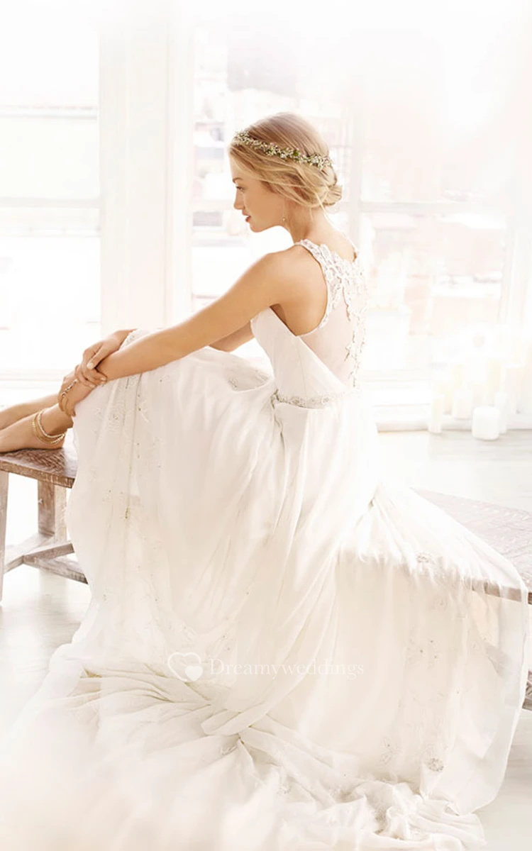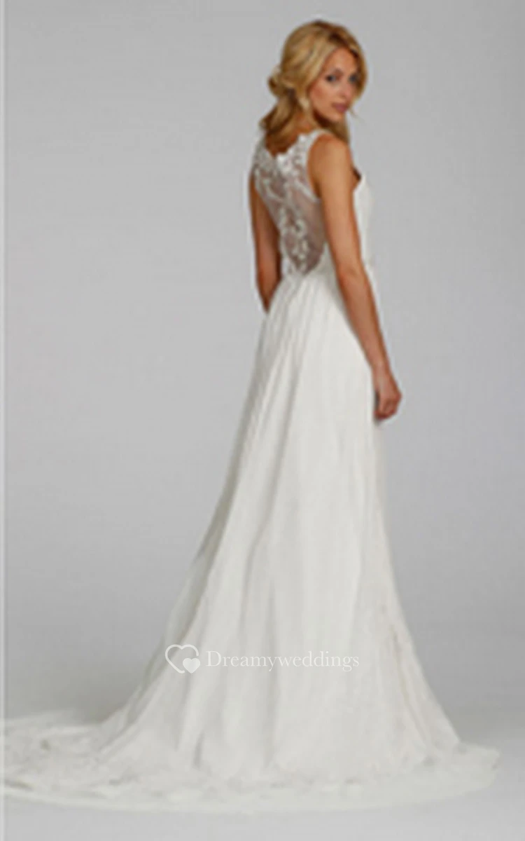 Sexy V Neckline Long Chiffon Dress With Beaded Embroidery