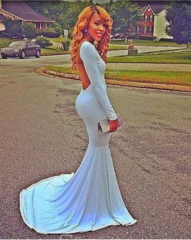 Sexy White Open Back Long Sleeve Prom Dress Long Evening Party Gown
