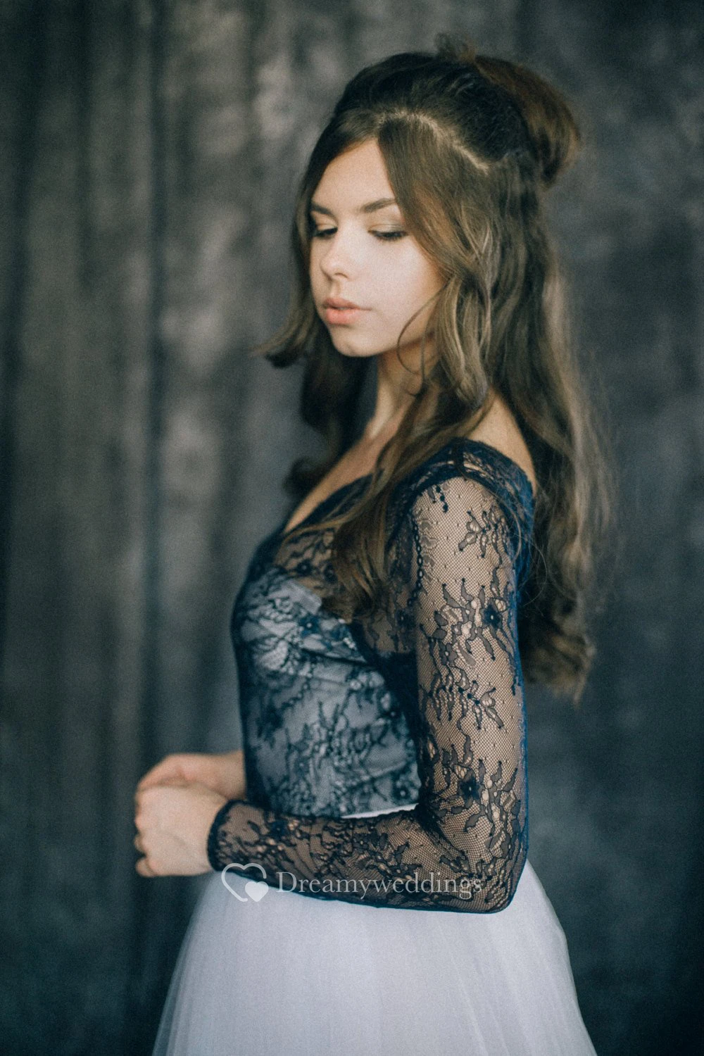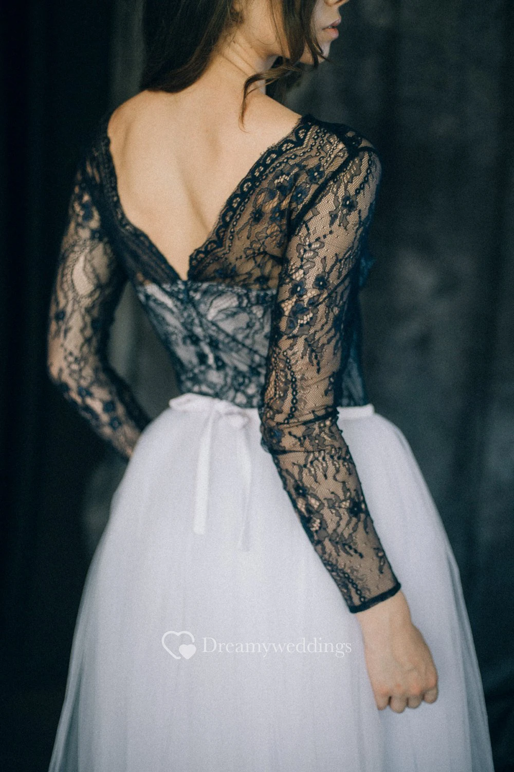 Sheath Black Wedding Dress V-neck Long Sleeve Illusion Low-V Back Lace