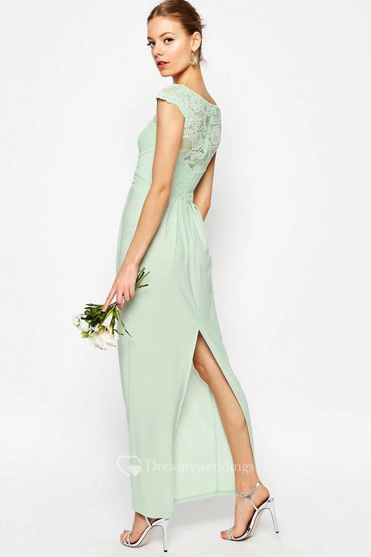 Sheath Ankle-Length Bateau Neck Cap Sleeve Lace Chiffon Bridesmaid Dress