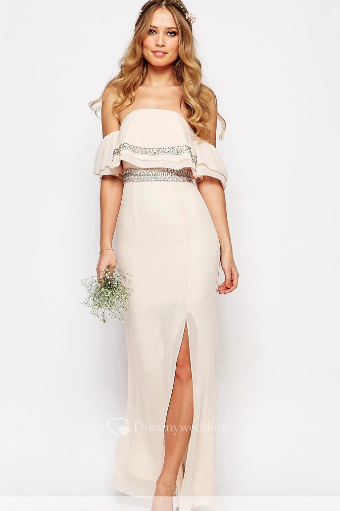 Sheath Ankle-Length Strapless Beaded Chiffon Bridesmaid Dress