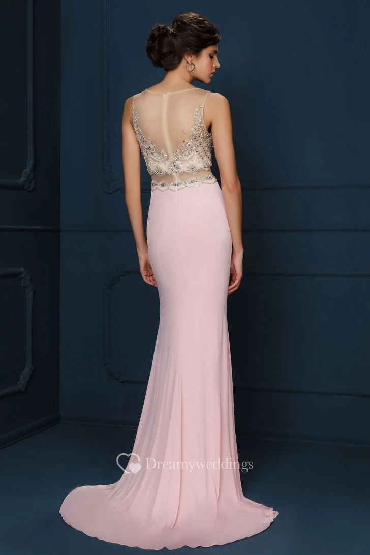 Sheath Appliqued Sleeveless Bateau Neck Chiffon Evening Dress