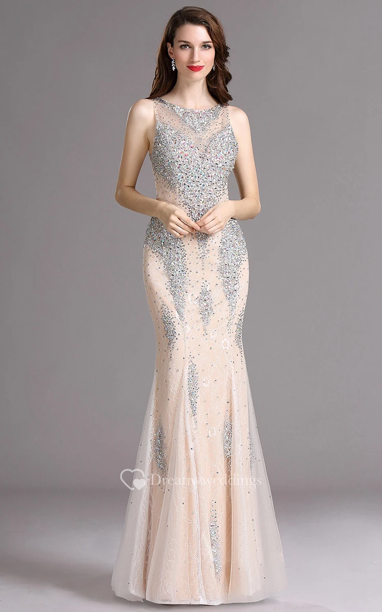 Sheath Bateau Sleeveless Tulle Beading Illusion Dress