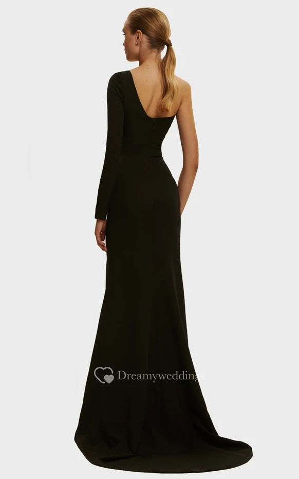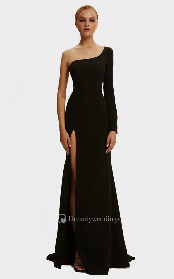 Sheath Casual Satin Sweep Train Prom Dress with Split Front