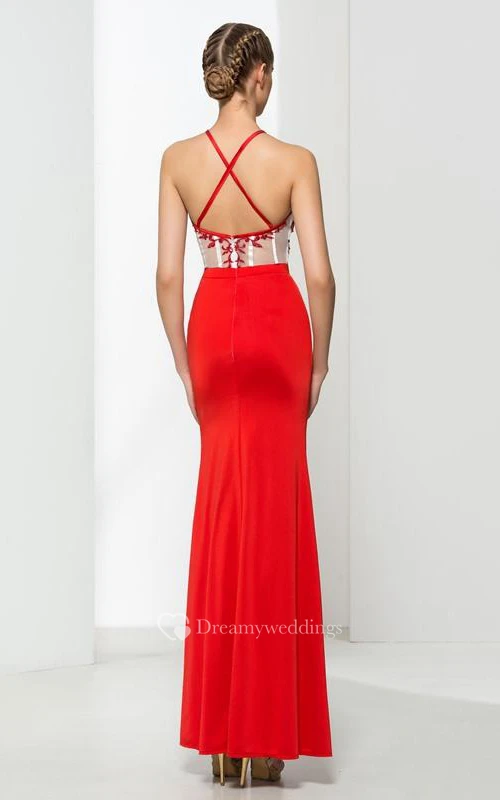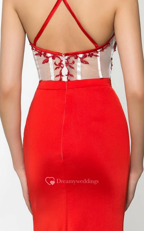 Sheath Criss-Cross Straps Split-Front Prom Dress