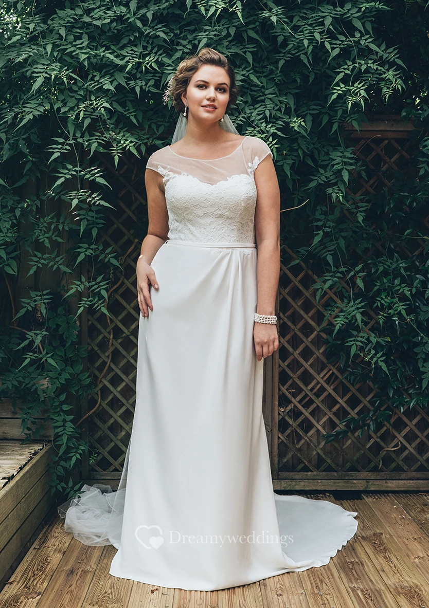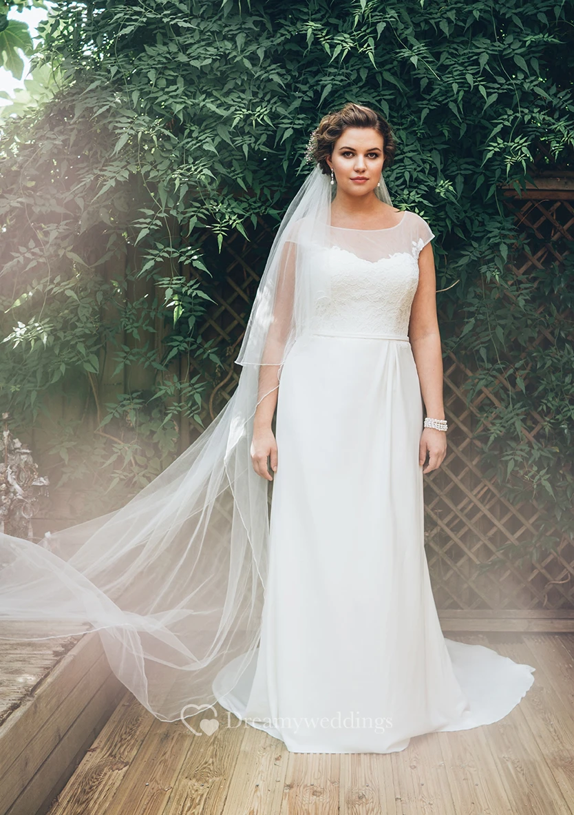 Sheath Floor-Length Bateau Neck Short Sleeve Chiffon Court Train Appliques Dress