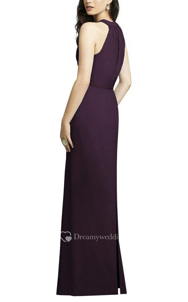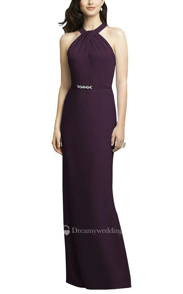Sheath Floor-length Bridesmaid Dress with Beaded Belt