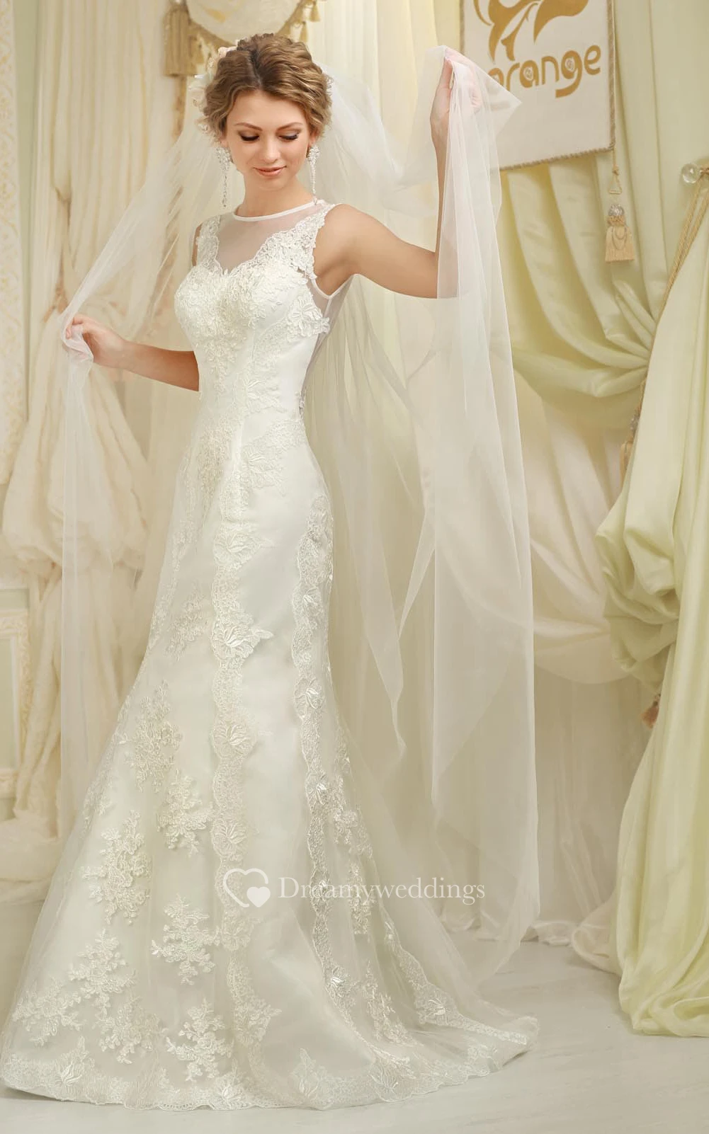 Sheath Floor-Length High-Neck Sleeveless Illusion Lace Dress