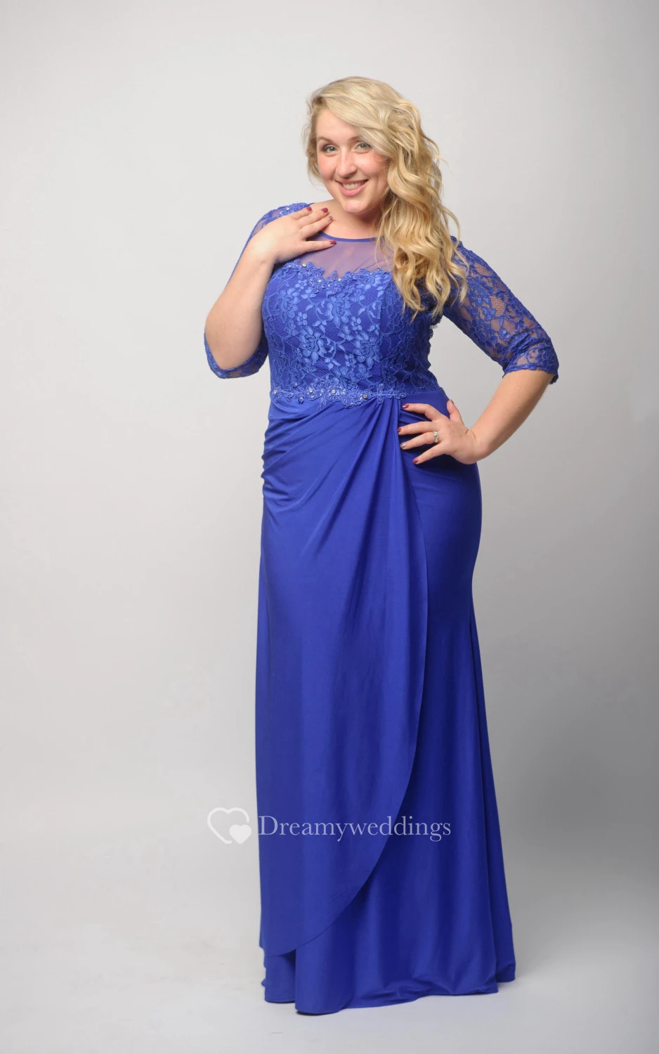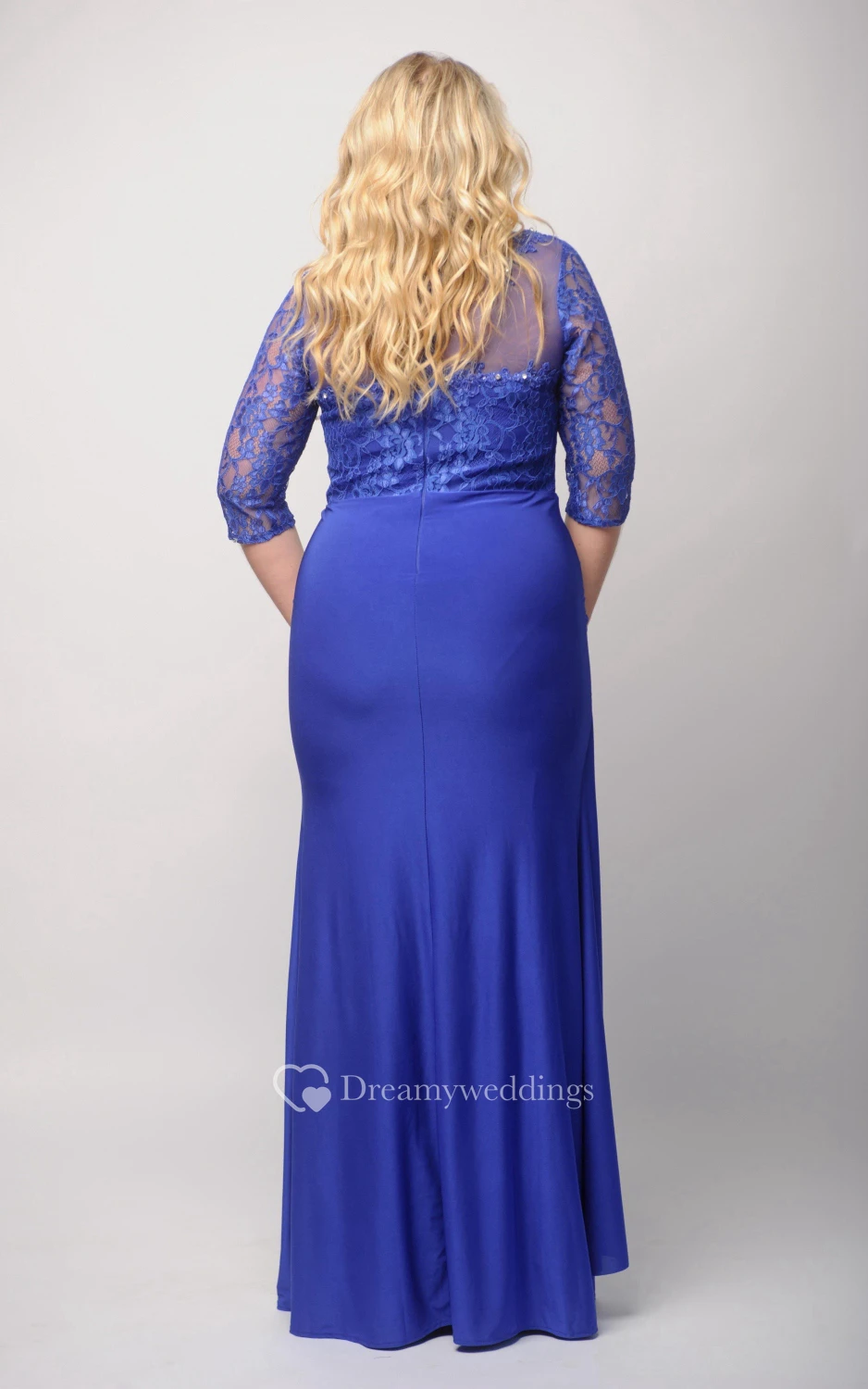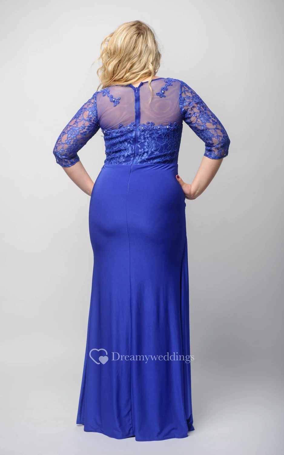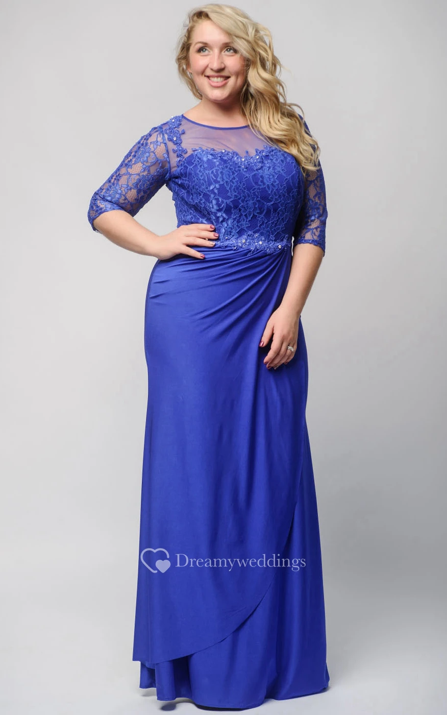 Sheath Floor-Length Jewel Half Sleeve Jersey Beading Lace Zipper Dress